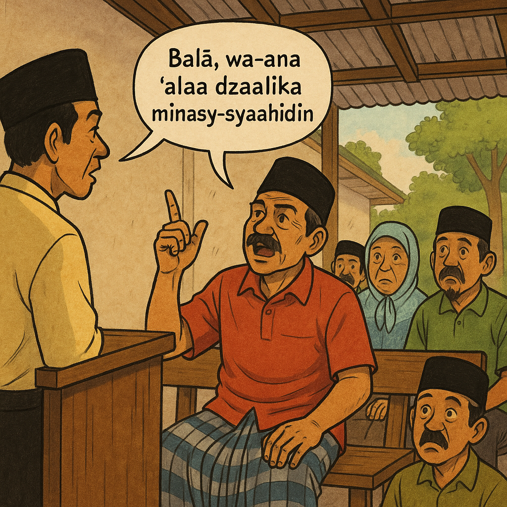 “Wa ana ‘ala dzalika minasy-syahidin” – sebagai tanda menjadi saksi atas keadilan Allah.