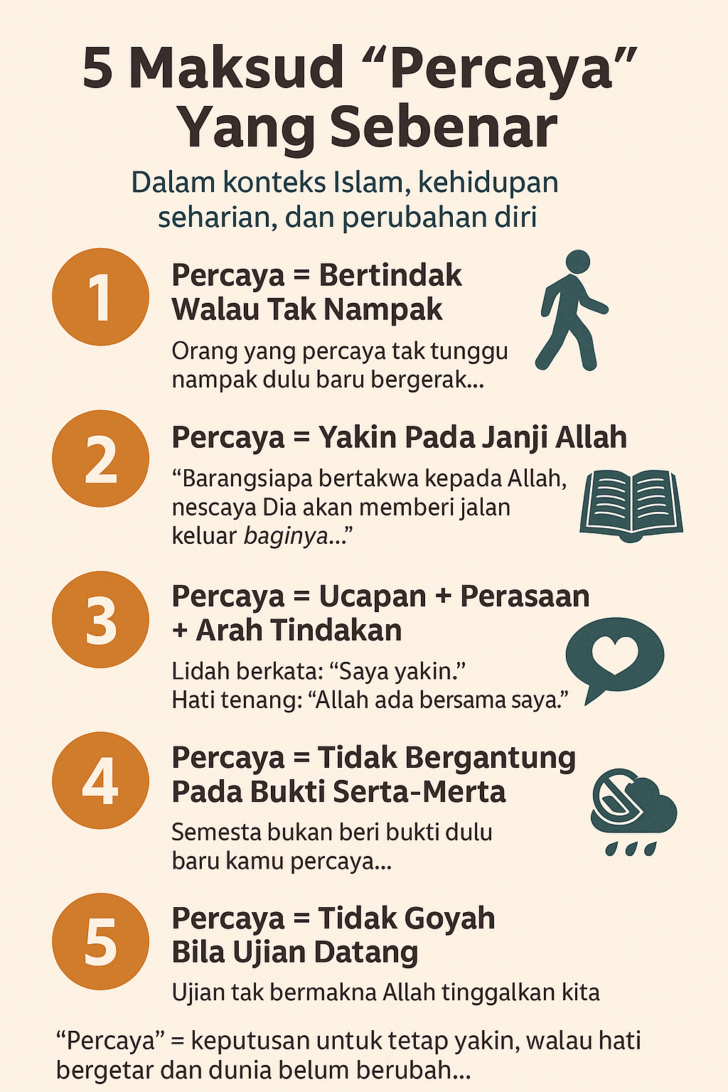 Ramai orang guna perkataan ini, “Percaya pada rezeki”, “Percaya pada diri”, “Percaya pada Allah”, tapi ramai tidak faham konsepnya dengan sebenar, atau hanya faham di permukaan. Saya cuba bongkar makna…