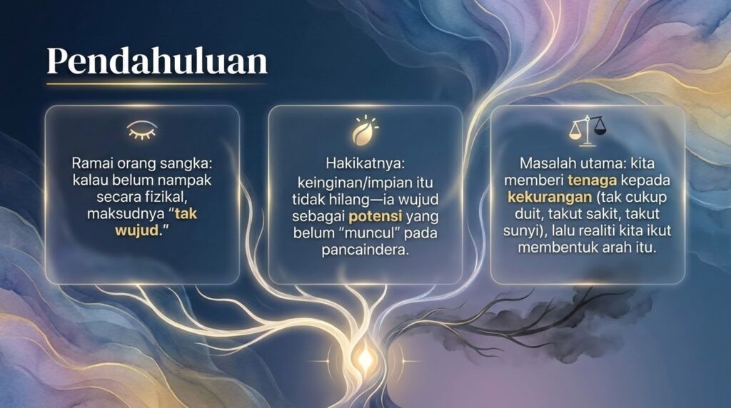 Apa yang kita lihat hari ini….rezeki, kesihatan, hubungan – sebenarnya ialah hasil daripada keadaan dalaman kita sebelum ini.